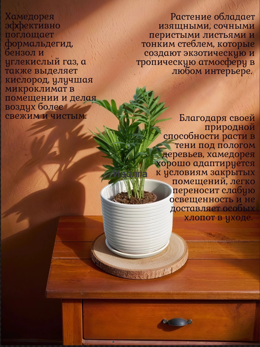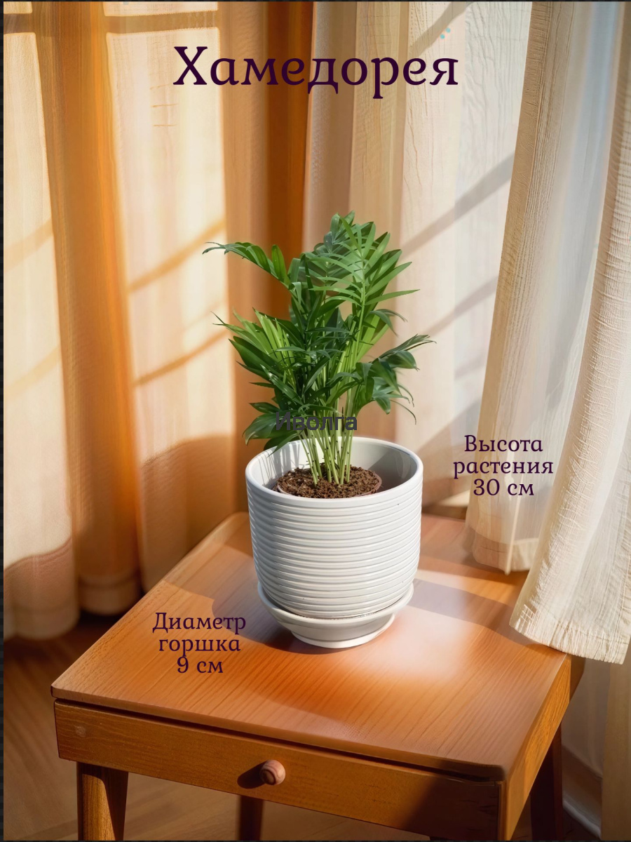 Размер. Хамедорея в домашних условиях вырастает до 1,5—2 м. По мере роста ствол оголяется. Скорость роста медленная, пальма долго сохраняет компактность.